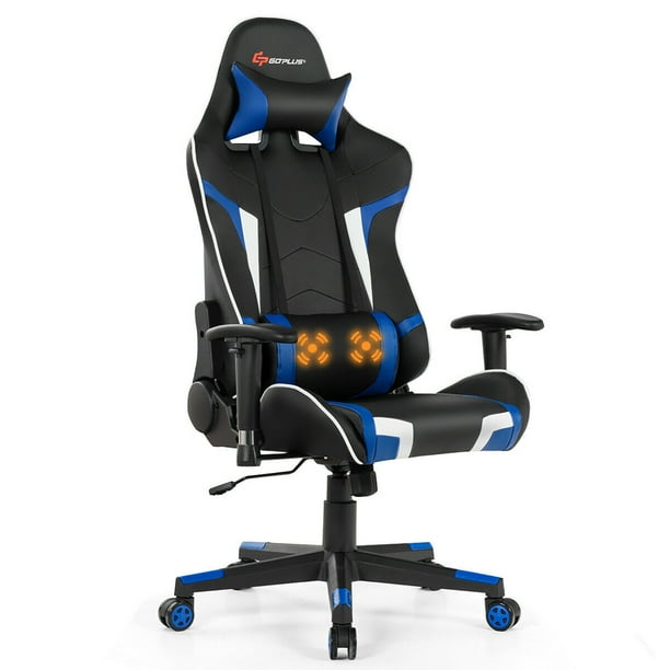 Goplus Massage Gaming Chair Reclining Swivel Racing Office Chair W Lumbar Support Blue Walmart Com Walmart Com